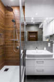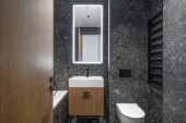 Zdjęcie "Szare i czarne łazienka" może być wykorzystywane do celów osobistych i komercyjnych zgodnie z warunkami zakupionej licencji Royalty-free. Obraz jest dostępny do pobrania w jakości wysokiej rozdzielczości do 5760x3840.