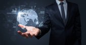 Globalny internet za pomocą koncepcji z biznesmenem