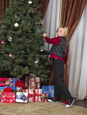 zaskoczony pre dorastającego chłopca rozpakowaniu jego prezent