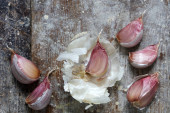Układ z czosnku i cebuli na Stół Łupek naturalny z gałązek z miejsca kopii