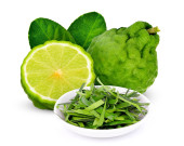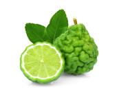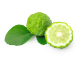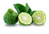 całości i pół świeżej bergamotki z zielonych liści na białym tle na Zielone Świątki
