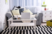 Wygodne łóżko i stół z laptopa w pokoju dziecka nowoczesne