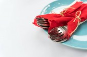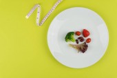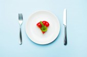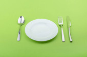 Pojęcie diety, niewielką ilość Sałatka na biały okrągły talerz z widelcem i nożem