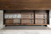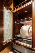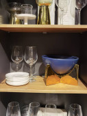 Zdjęcie "Stylowa kuchnia z nowoczesne naczynia w szafie" może być wykorzystywane do celów osobistych i komercyjnych zgodnie z warunkami zakupionej licencji Royalty-free. Obraz jest dostępny do pobrania w jakości wysokiej rozdzielczości do 5760x3840.