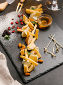sztuk pyszne sery i owoce na kamiennej płycie