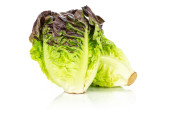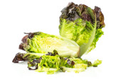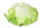 Sałata lodowa, jeden świeżej kapusty, głowa i poszarpane liście na białym tle na białym tle za dużo urlopu Zielona sałata