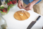 Ojciec i dziecko przygotowanie Sałatka jarzynowa w kuchni