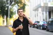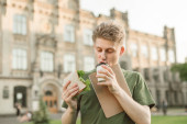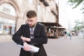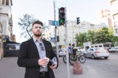 Zdjęcie "Zajęty człowiek śpieszy, pije kawę i zjada przekąski w podróży. Biznesmen pije kawę i zjada w drodze do pracy. Biznes człowiek ma nie ma czasu" może być wykorzystywane do celów osobistych i komercyjnych zgodnie z warunkami zakupionej licencji Royalty-free. Obraz jest dostępny do pobrania w jakości wysokiej rozdzielczości do 5760x3840.
