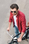 przycięte strzał człowieka w szykowny garnitur i zegarek na rękę z rocznika rowerów