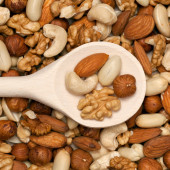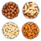 Nakrętki nakrętka kolekcji z góry orzechy laskowe orzechy ziemne miska na białym tle o
