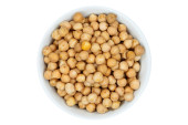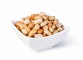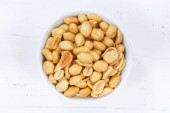 Orzeszki ziemne, orzechy z góry miska na białym tle