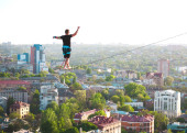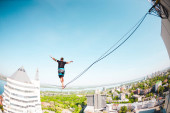 Zdjęcie "Człowiek jest równoważenie nad miastem." może być wykorzystywane do celów osobistych i komercyjnych zgodnie z warunkami zakupionej licencji Royalty-free. Obraz jest dostępny do pobrania w jakości wysokiej rozdzielczości do 5760x3840.