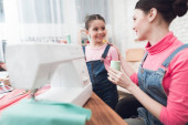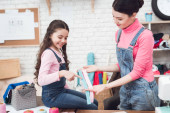 Mama i córka współpracują ze sobą w szwalni i przytrzymując wstążki