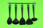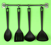 czarny naczynia na srebrne haczyki, na zielonym tle
