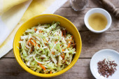 Świeżą surówką w misce i składniki na sałatkę. Styl rustykalny.