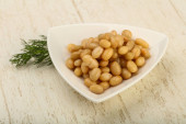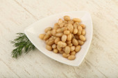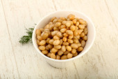 Białej fasoli w misce z koperkiem oddział