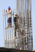 Kuala Lumpur, Malezja-07 lipca 2017: pracowników budowlanych pracujących na wysokości na budowie. Przy użyciu rusztowania jako tymczasowe platformy do pracy. Są one wymagane do noszenia odpowiednich narzędzi bezpieczeństwa.
