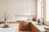 Zdjęcie "Drewniane kuchnia z barem, Zamknij się" może być wykorzystywane do celów osobistych i komercyjnych zgodnie z warunkami zakupionej licencji Royalty-free. Obraz jest dostępny do pobrania w jakości wysokiej rozdzielczości do 5760x3840.