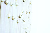 Zdjęcie, metalowe papieru koło kształt Garland z Boże Narodzenie światła na tle blured srebrny