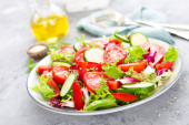 Zdjęcie "Sałatka z mięsa kurczaka. Sałatką ze świeżych warzyw z piersi kurczaka. Sałatka mięsna z filet z kurczaka i warzyw na talerzu" może być wykorzystywane do celów osobistych i komercyjnych zgodnie z warunkami zakupionej licencji Royalty-free. Obraz jest dostępny do pobrania w jakości wysokiej rozdzielczości do 5760x3840.