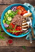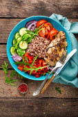 Zdjęcie "Sałatka ze świeżych i grillowane warzywa i grzyby. Sałatka jarzynowa z pieczarki z grilla. Sałatka warzywna na talerzu. Żywność wegetariańska zdrowy" może być wykorzystywane do celów osobistych i komercyjnych zgodnie z warunkami zakupionej licencji Royalty-free. Obraz jest dostępny do pobrania w jakości wysokiej rozdzielczości do 5760x3840.