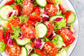 Zdjęcie "Sałatka jarzynowa. Świeże sałatki z warzyw i orzechów. Sałatka warzywna na talerzu. Żywność wegetariańska zdrowy" może być wykorzystywane do celów osobistych i komercyjnych zgodnie z warunkami zakupionej licencji Royalty-free. Obraz jest dostępny do pobrania w jakości wysokiej rozdzielczości do 5760x3840.
