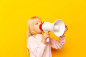 Zdjęcie "Cute little girl z megafon na tle koloru" może być wykorzystywane do celów osobistych i komercyjnych zgodnie z warunkami zakupionej licencji Royalty-free. Obraz jest dostępny do pobrania w jakości wysokiej rozdzielczości do 5760x3840.