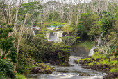 Malowniczy widok Pee Pee wodospadu w Hilo, Wailuku River State Park, Hawaje, Stany Zjednoczone Ameryki