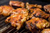 Zdjęcie "Zamknij się obraz marynowane Skrzydełka z grilla nad ogniem na letnim grillowaniem" może być wykorzystywane do celów osobistych i komercyjnych zgodnie z warunkami zakupionej licencji Royalty-free. Obraz jest dostępny do pobrania w jakości wysokiej rozdzielczości do 5760x3840.