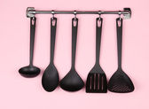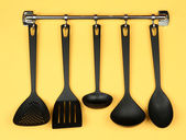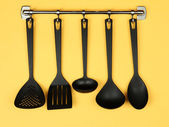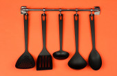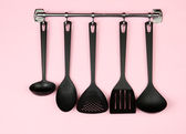 czarny naczynia na srebrne haczyki, na czerwonym tle