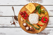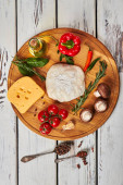 Widok z góry z jednej kawałek pysznej pizzy na drewnianą deską do krojenia