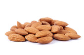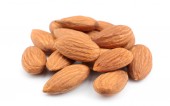 Grupa dojrzałe migdałów na białym tle