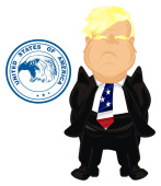 szef uśmiechający się w czarny garnitur z Usa symboli