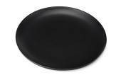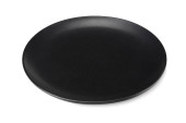 Pusty Czarny ceramiczny okrągły talerz na białym tle na białym ze ścieżką przycinającą.