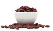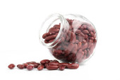 Czerwona fasola na szklanych butelek na białym tle widok z góry na białym tle