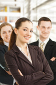 Zdjęcie "kobieta przekonany, biznes z zespołu za nią" może być wykorzystywane do celów osobistych i komercyjnych zgodnie z warunkami zakupionej licencji Royalty-free. Obraz jest dostępny do pobrania w jakości wysokiej rozdzielczości do 5760x3840.