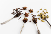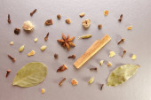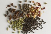 Zdjęcie "Różnych indyjskich przypraw i nasiona na ciemny kamień tabeli. Kolorowe przypraw kardamonu, kminek, ziele angielskie, czarny pieprz, widok z góry. Żywności ekologicznej, zdrowego stylu życia. Miejsca na tekst" może być wykorzystywane do celów osobistych i komercyjnych zgodnie z warunkami zakupionej licencji Royalty-free. Obraz jest dostępny do pobrania w jakości wysokiej rozdzielczości do 5760x3840.
