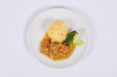 Zdjęcie "Tempeh z sosem pomidorowym i millets na białym tle" może być wykorzystywane do celów osobistych i komercyjnych zgodnie z warunkami zakupionej licencji Royalty-free. Obraz jest dostępny do pobrania w jakości wysokiej rozdzielczości do 5760x3840.