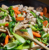 Domowej roboty, azjatki nerkowca kurczaka smażyć z warzyw
