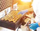 Cukiernik profesjonalne przygotowanie belgijskich gofrów w cukierni