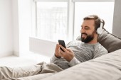 Zdjęcie "Wizerunek przystojny mężczyzna młody na białym tle nad biała ściana słuchania muzyki w tle ze słuchawkami." może być wykorzystywane do celów osobistych i komercyjnych zgodnie z warunkami zakupionej licencji Royalty-free. Obraz jest dostępny do pobrania w jakości wysokiej rozdzielczości do 5760x3840.