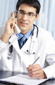 Zdjęcie "młody lekarz na telefon, w urzędzie" może być wykorzystywane do celów osobistych i komercyjnych zgodnie z warunkami zakupionej licencji Royalty-free. Obraz jest dostępny do pobrania w jakości wysokiej rozdzielczości do 5760x3840.