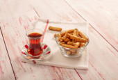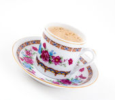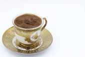 Tradycyjne świeżo zaparzone kawy po turecku z Turcy, niski kąt widzenia, wysokiej jakości obrazu