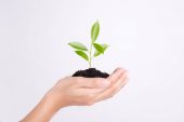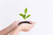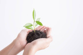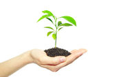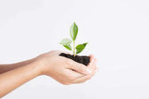 Ręce, trzymając sadzonka na białym tle, ekologia koncepcja