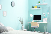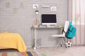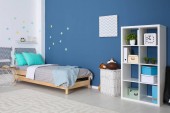 Dziecko nowoczesne wnętrza pokoju z wygodnym łóżkiem i biurkiem