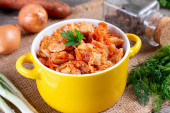 Kapusty gulasz z kiełbasa z rusztu - tradycyjne danie kuchni niemieckiej