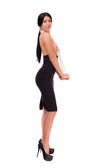 piękna dziewczyna w białą koszulę i czarną spódnicę na szarym tle
