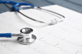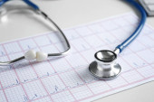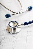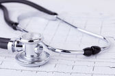 Stetoskop z cardiograms, zbliżenie. Pojęcie opieki zdrowotnej