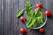 Zdjęcie "Składniki do gotowania, oliwy z oliwek, bazylia zielony, przyprawy i pomidory na czarnym tle kamień" może być wykorzystywane do celów osobistych i komercyjnych zgodnie z warunkami zakupionej licencji Royalty-free. Obraz jest dostępny do pobrania w jakości wysokiej rozdzielczości do 5760x3840.