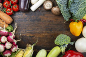 zestaw warzyw. warzywa świeże rolnika jako tło. miejsce dla tekstu